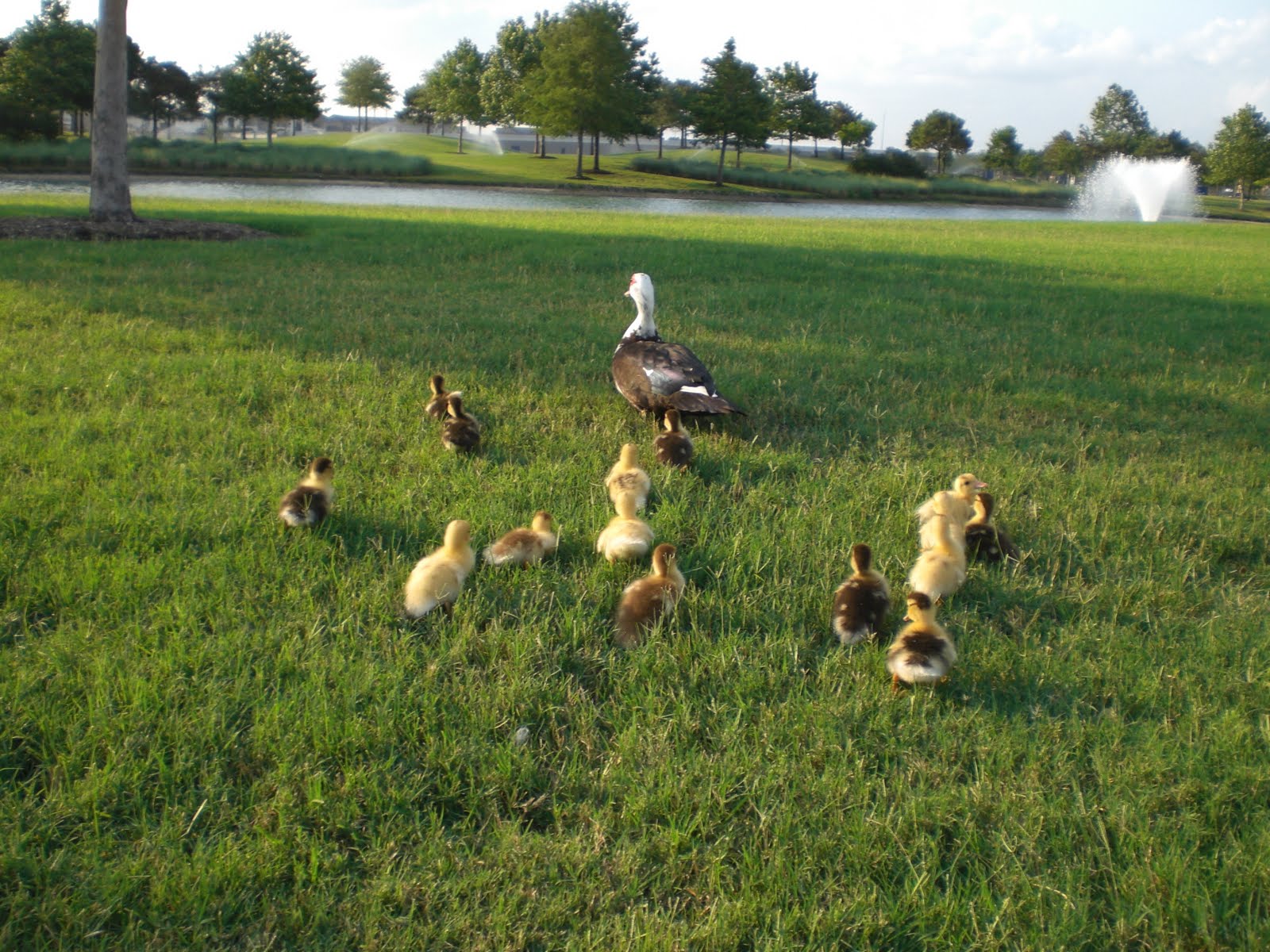 去年的小鸭子都长大,都生新的小鸭子了。